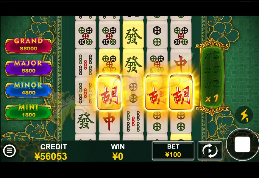 這是一款以麻將為主題的線上老虎機遊戲,遊戲畫面充滿東方風格,採用經典的麻將牌作為轉輪圖案,增添獨特的娛樂體驗。