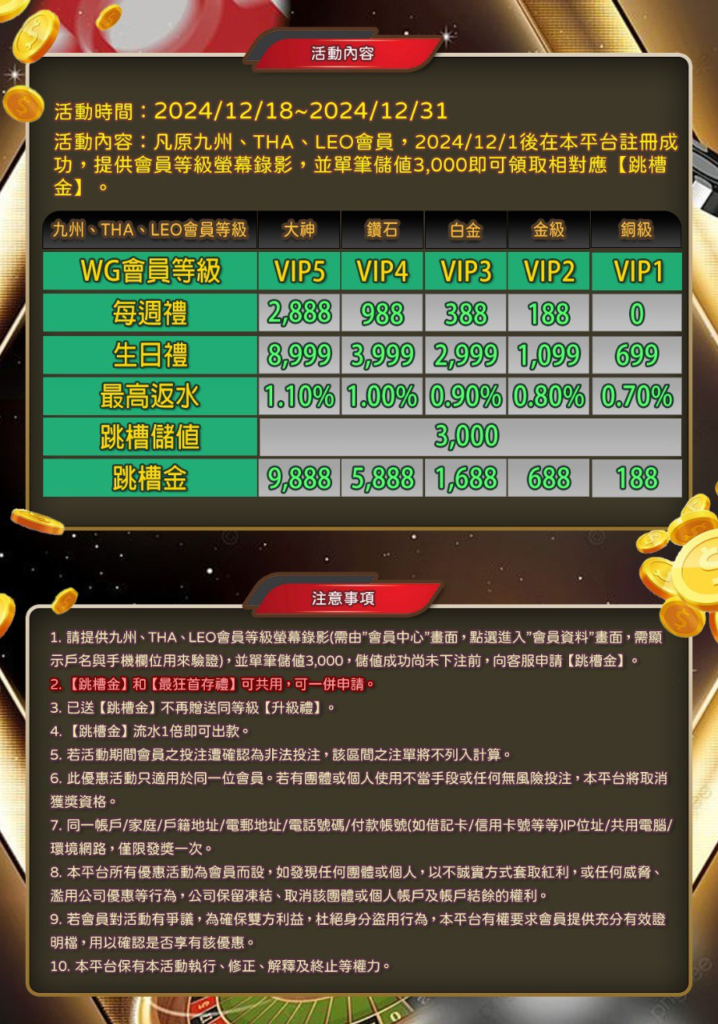 隨著九州娛樂城宣布倒閉,許多VIP玩家對於如何妥善轉移資金和繼續遊戲感到憂心。為解決玩家困擾,贏家娛樂城推出了貼心的優質跳糟金,協助原九州娛樂的會員快速轉移至贏家平台。
