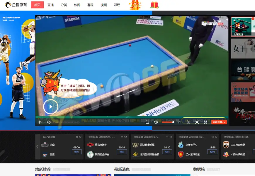 企鵝體育是一個由中國騰訊公司推出的體育直播和資訊平台,提供全球各種大型體育賽事的轉播與報導,涵蓋足球、籃球、網球、冰球等多個運動項目。企鵝體育擁有多樣化的賽事版權,特別是NBA和歐洲足球聯賽等熱門賽事,讓用戶可以透過手機或電腦輕鬆觀看高畫質直播,隨時追蹤最新賽況。