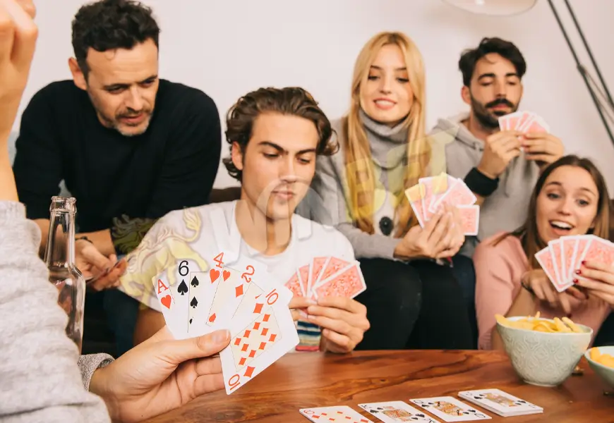 當大家微醺的時候很適合來玩撲克牌遊戲,除了可以加速大家喝酒的進度還能炒熱氣氛。