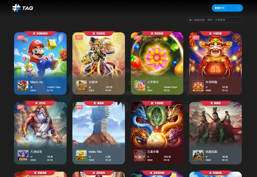 TAG電子老虎機是近來備受矚目的線上老虎機品牌,以高畫質畫面、流暢遊戲體驗和獨特機制吸引玩家。並且支援多種國際語言,還會有詳細的遊戲說明。
