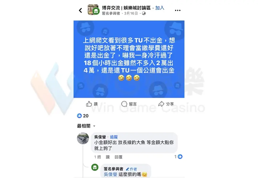 TU娛樂城會出金嗎?來看網友怎說?